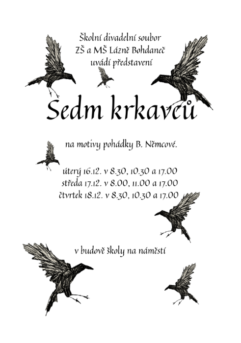 Zveme vás na představení Sedm krkavců 16.-18.12. přízemí školy na náměstí ...